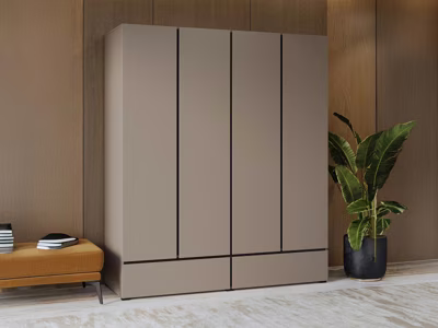 De kast CROSSAIR 4 deuren 2 lades taupe combineert stijl, rust en praktische opbergruimte in één elegant meubelstuk. Met vier deuren, twee garderobestangen, twee legplanken en twee ruime lades biedt deze kast dubbele opbergruimte voor al je kleding, beddengoed en accessoires.De verfijnde taupe kleur zorgt voor een warme, moderne uitstraling die perfect past in zowel eigentijdse als klassieke interieurs. Achter de deuren blijft alles netjes georganiseerd, terwijl de lades onderaan extra ruimte bieden voor kleinere items.Kast CROSSAIR 4 deuren 2 lades taupe: een stijlvolle blikvanger die orde en elegantie in je slaapkamer brengt!