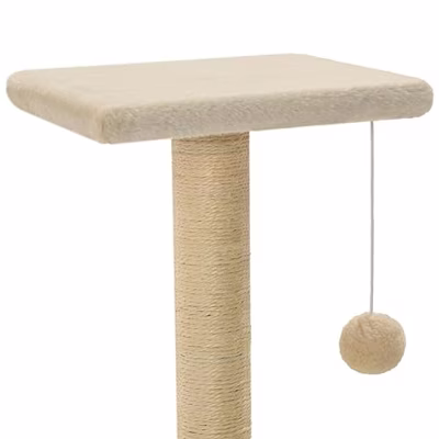 Je katten kunnen deze kwalitatief hoogwaardige kattenkrabpaal gebruiken om aan te krabben, op te gaan zitten, zich in te verstoppen en om op te ontspannen. Hij past in elk interieur. De kattenkrabpaal geeft je katten de ruimte om heerlijk uit te strekken en biedt een prettige plek om te liggen, met name in de koude wintermaanden wanneer ze niet naar buiten kunnen. Het met pluche bedekte oppervlak is zeer comfortabel en de krabpaal is omwikkeld met sisaltouw. Het heeft een hangende bal als speelgoed en uitzichtplatformen en rustgebieden om je kleine vriend te vermaken. Het onderstuk is stevig en stabiel. Dit product is geschikt voor kittens. Belangrijke opmerking: controleer voor aankoop of de afmetingen geschikt zijn voor je kat(ten).