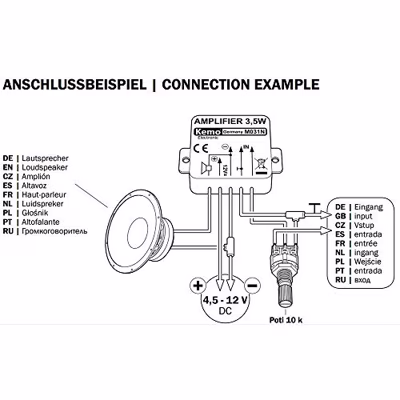 Meer over Kemo M031N Mono-versterker Module 5 V/DC, 6 V/DC, 9 V/DC, 12 V/DC 3.5 W