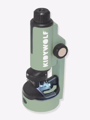 kidymicroscoop KIDYWOLF Ontdek de microscopische wereld met de Kidymicroscoop - een draagbare microscoop van Kidywolf. Dit aantrekkelijke educatieve hulpmiddel is ontworpen voor jonge ontdekkingsreizigers en biedt een meeslepende en interactieve wetenschappelijke verkenning. Het is bedoeld om de nieuwsgierigheid van kinderen in de wereld van de wetenschap te wekken en hun leren op een leuke en creatieve manier te stimuleren.De Kidymicroscoop heeft veel interessante functies. Hij is licht en compact, waardoor je hem gemakkelijk kunt meenemen. Het heeft een vergrotingsbereik van 20x tot 40x, zodat kinderen verschillende specimens van dichtbij kunnen bekijken. De geïntegreerde ledverlichting zorgt voor een perfecte zichtbaarheid van het te bestuderen object. Bovendien werkt hij op AAA-batterijen, wat een langdurig gebruik garandeert.Deze microscoop is gemaakt van kunststof van hoge kwaliteit die zowel robuust als duurzaam is, waardoor hij lang meegaat. Hij is gemakkelijk schoon te maken, gebruik gewoon een zachte doek om hem in perfecte staat te houden. Op het gebied van veiligheid voldoet de Kidymicroscoop aan alle noodzakelijke veiligheidsnormen. Het heeft geen kleine afneembare onderdelen, waardoor er geen risico is op verstikking. De voordelen van het product vergrotingsfactor X50 / X150 / X300 9 ervaringen druppelaar Pincet Meer informatie Vanaf 5 jaar. kidymicroscoop KIDYWOLF