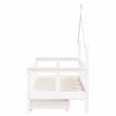 Creëer een plek vol plezier voor je kleintje met dit fantastische houten kinderbedframe! Massief grenenhout: het kinderbedframe is gemaakt van massief grenenhout. Massief grenenhout is een prachtig, natuurlijk materiaal. Grenenhout heeft rechte nerven en de noesten geven het een kenmerkende, rustieke uitstraling.Stevige lattenbodem: het kinderbed heeft houten latten voor stevige ondersteuning, ventilatie en stabiliteit.Bed met huisontwerp: dit peuterbed met een cool maar eenvoudig ontwerp maakt van slapen een leuke ervaring. Het biedt veel mogelijkheden om te spelen en de kleine wereld van je kind op te bouwen om creativiteit en verbeelding te stimuleren.Opberglade: de inbegrepen opberglades bieden voldoende ruimte voor het opbergen van klein speelgoed, kleding en beddengoed, waardoor de kamer netjes opgeruimd blijft.Doordacht ontwerp: de hoogte van het eenpersoonsbed voor kinderen is zo ontworpen dat het laag bij de grond staat, zodat je kind gemakkelijk in en uit bed kan stappen.
