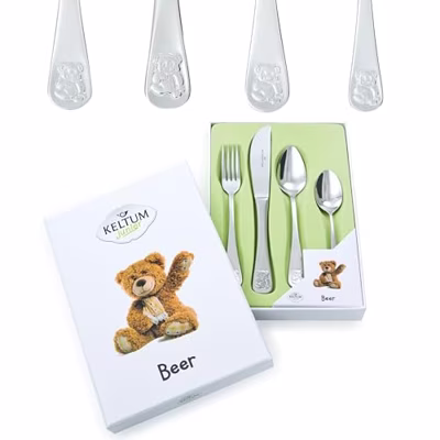 Ook van dit model is een zesdelige geschenkset verkrijgbaar met een edelstalen bord en beker. Je zou er bijna mee gaan knuffelen.