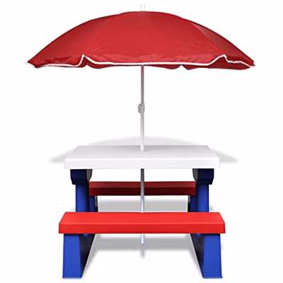Kinderpicknicktafel met banken en parasol meerkleurig