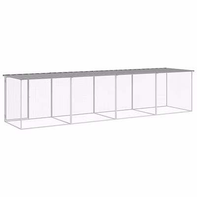 Kippenhok met dak 403x98x90 cm gegalvaniseerd staal lichtgrijs