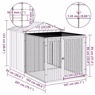 Kippenhok met ren 117x201x123 cm gegalvaniseerd staal antraciet