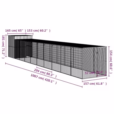 Kippenhok met ren 165x1067x181 cm staal lichtgrijs