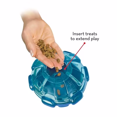 Kong Rewards Ball Large Deze Kong Rewards Ball Large is een treat dispenser snackbal van Kong in de vorm van een bal gemaakt van duurzaam materiaal. Dit leuke hondenspeelgoed van Kong is goed voor urenlang speelplezier! Deze treat dispenders is gemaakt van zeer duurzaam materiaal dat zich uitstekend leent voor urenlang spelen zonder geluidsoverlast. Door de vorm van de bal stuitert en rolt het speelgoed onvoorspelbare richtingen uit wanneer ermee gerold of gegooid wordt. Dit is mentaal uitdagend en stimulerend voor de hond en wakkert het jachtinstinct aan. Door de openingen in de bal laat het speelgoed beloningen, snacks of voer los wanneer er mee gerold wordt, waardoor de hond beloond wordt voor zijn inventiviteit en speelgedrag. Je kunt het speelgoed ook gebruiken met normaal voer, als hulp bij gewichtscontrole. - Treat dispenser / snackbal van Kong - Rolt en stuitert door de vorm onvoorspelbare richtingen uit - Laat beloningssnoepjes, voer of snacks los - Zeer duurzaam Maat: large