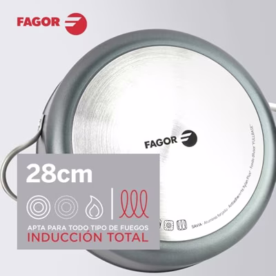 Als u graag voor elk detail van uw huis zorgt en op de hoogte bent van producten die uw leven aangenamer maken, koopt dan Kookpot met Deksel Fagor Grijs Ø 28 cm Gehard aluminium voor de beste prijs.De Fagor SAVIA steelpan met deksel van 28 cm is een keukengerei ontworpen voor optimale prestaties dankzij de fabricage van 4 mm dik gesmeed aluminium, een materiaal dat zorgt voor een gelijkmatige en efficiënte warmteverdeling en zo een egale bereiding van voedsel garandeert. Het interieur is beschermd met een tweelaags anti-aanbaklaag met steenafwerking, vrij van PFOA, lood en cadmium, die voorkomt dat voedsel blijft plakken en het schoonmaken na gebruik aanzienlijk vergemakkelijkt. Deze steelpan valt op door het ergonomische handvat van roestvrij staal, dat zorgt voor een veilige en comfortabele grip. Hij is geschikt voor alle warmtebronnen, inclusief volledige inductie, wat hem veelzijdig maakt voor elke moderne keuken. Het ontwerp bevat een FULLBASE-bodem die stabiliteit en contact met de warmtebron verbetert, terwijl de matte metalen buitenkant in grijstint een sobere en elegante uitstraling geeft. Bovendien is hij ovenbestendig tot 220 °C, wat de culinaire mogelijkheden vergroot. Gemaakt in Spanje, combineert deze steelpan duurzaamheid, energie-efficiëntie en functionaliteit, essentieel voor wie een robuust en praktisch keukengerei zoekt voor dagelijks gebruik. Al met al is de Fagor SAVIA 28 cm een complete en betrouwbare oplossing voor gelijkmatig en comfortabel koken op elk type kookplaat.Materiaal: Gehard aluminiumSoort:KookpotKookpot met DekselEigenschappen:antiaanbakErgonomische handgreepGemakkelijk schoon te makenVoor alle soorten keukensInductieGeschikt voor de OvenPFOA-vrijHandvattype: Roestvrij staalKleur: GrijsCompatibel: GaskookplaatGeschatte diameter: Ø 28 cmGeschikt voor: Geschikt voor gas-, inductie-, elektrische en hallogeenfornuizenEAN: 8429113801861