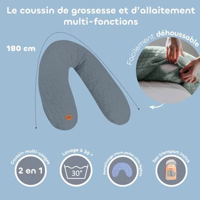 Kraam- en borstvoedingskussen BEABA Big Flopsy Het borstvoedingskussen Big Flopsy van Beaba is in eerste instantie zeer nuttig tijdens de zwangerschap om de slaap van aanstaande moeders te verbeteren, hij wordt tussen de benen, rond de taille, in de rug geplaatst.... overal waar het de pijn en het ongemak van de zwangerschap kan verlichten. En tijdens de borstvoeding zorgt het voor optimaal comfort voor moeder en baby! Zeer comfortabel omdat het gevuld is met ultralichte microkorrels, het Big Flopsy kussen zal dan ook zeer snel door het hele gezin gebruikt worden. Zodra uw kind wat ouder is, zal hij er graag mee knuffelen! De voordelen van kraam- en borstvoedingskussens Big Flopsy BEABA Zorgt voor comfort, steun en ontspanning Verbetert de slaap van de aanstaande moeder XL-formaat en multifunctioneel, dankzij de microkorrels binnenin kan het kussen worden aangepast aan vele posities Zachte en stevige ondersteuning om baby comfortabel te wiegen Afneembare hoes met rits Meer informatie Lengte 170 cm Gewicht: 1,4 kg Machinewasbare hoes op 30°C Kraam- en borstvoedingskussen Big lopsy RED CASTLE van geborsteld zuiver katoen (330 g/m²) 100% niet-giftige en reukloze polyester microparelvulling Neem bij vragen contact op met de klantenservice op 08 00 32 39 76 of per e-mail: sav@beaba.com