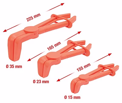 Voor het eenvoudig afklemmen van flexibele slangleidingen van 15,9 mm (5/8”) tot 35,0 mm (1.3/8”) gebogen uitvoering voor gebruik, ook bij krappe ruimtes voor het volledig stoppen van de...