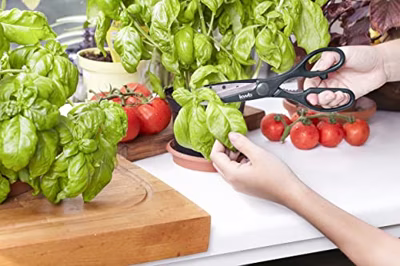 Handzaam, robuuste 215 mm lange huishoudschaar, roestvrijstalen schaarkling met gegolfde zaagsnede van 80 mm, geïntegreerde flessenopener, flessenopener of kroonkurkenopener, notenkraker, ergonomisch...
