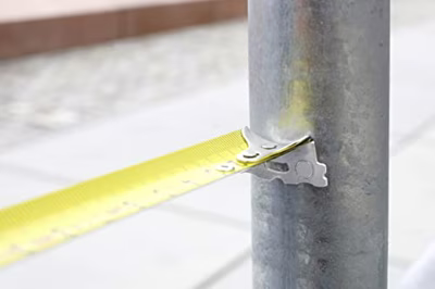 Stalen bandmaat, gebombeerd (gewelfde bandmaat), gehard, met speciale haak voor binnen- en buitenmeting, haak voorzien van sterke magneten, automatische terugloop na bandvrijgave, ABS kunststof...