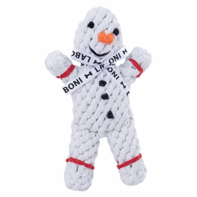 Laboni Hondenspeeltje Shawn Sneeuwman - Shawn de sneeuwman van Laboni is een multifunctioneel hondenspeeltje dat design, duurzaamheid en speelplezier perfect combineert. Gemaakt van zuiver katoen, gekleurd met natuurlijke verfstoffen, is dit speelgoed speciaal ontworpen om kapot gekauwd te worden - en reinigt daarbij op speelse wijze het gebit van uw hond. Dankzij het stevige handwerk is Shawn niet alleen robuust en recyclebaar, maar ook geschikt voor werp- en apporteerspelletjes. Het TÜV Süd-gekeurde ontwerp garandeert veilig speelplezier en is bekroond met de International Design Award. Geef uw hond een verantwoord en stijlvol kerstcadeau. Getest volgens de richtlijnen voor kinderspeelgoed.