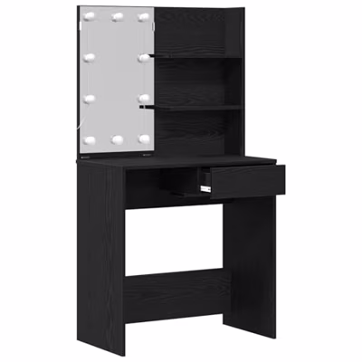 LED Kaptafel in Zwart Eiken - 74.5x40x141 cm, Gemaakt van Bewerkt Hout