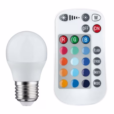 De LED lamp druppels 3.5W E27 opaal 75lm RGB kleurwissel met afstandsbediening heeft een hoge lichtstroom van 75 lm en een opstarttijd van slechts 0,5 seconden tot 60% van de lichtstroom. De lamp is ook dimbaar met behulp van de bijbehorende afstandsbediening, waardoor u de lichtintensiteit kunt aanpassen aan uw wensen.
