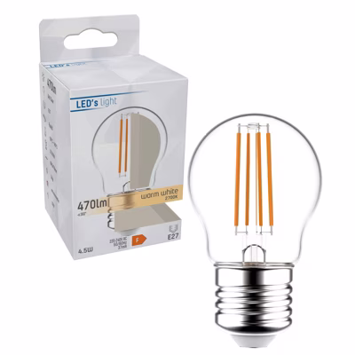 Een klassieke look met moderne LED technologie. LED Filament lampen zien er hetzelfde uit als de traditionele gloeilampen, maar besparen tot 80% meer stroom. Deze kogellampen hebben een grote E27 fitting en zijn ideaal voor tafellampen, hanglampen en decoratieve armaturen. Alle voordelen op een rijtje:
