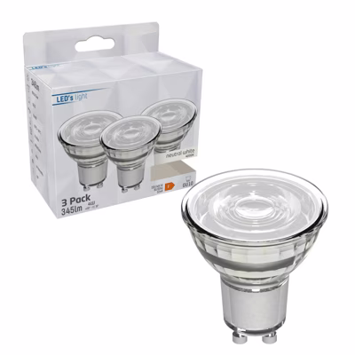 Deze led-spots hebben een lichtopbrengst van 345 lumen en zijn daarmee het meest gebruikt in plafondspots, vitrinelampen, tafellampen, inbouwspots en meer. Niet te blauw, ook niet te geel. Een neutrale witte lichtkleur van 4000 Kelvin creëert een omgeving die je fris en alert houdt gedurende de dag. Ideaal voor: kantoor, gangen, winkels, hobbykamers, opslagruimtes en meer.