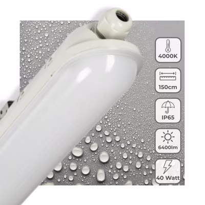 Met een indrukwekkende lichtopbrengst van 6400 lumen levert de LED's Light Pro Premium LED TL armatuur van 150 cm een overvloed aan helder licht, perfect voor ruimtes waar een hoge lichtsterkte nodig is. Dit maakt deze LED TL lamp ideaal voor grote werkplaatsen, magazijnen, sporthallen of andere hoge ruimtes waar je veel licht nodig hebt. Ondanks de krachtige verlichting verbruikt deze lamp slechts 40 watt, wat hem zowel efficiënt als energiezuinig maakt.