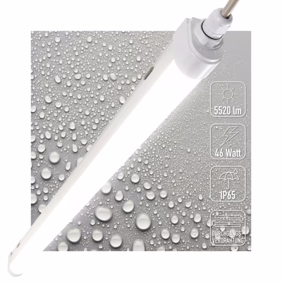 Deze LED TL armatuur is speciaal ontworpen voor betrouwbare en energiezuinige verlichting in veeleisende omgevingen. Met een IP65-classificatie is het armatuur volledig stofdicht en beschermd tegen waterstralen, waardoor het perfect is voor parkeergarages, vochtige ruimtes en lange gangen.