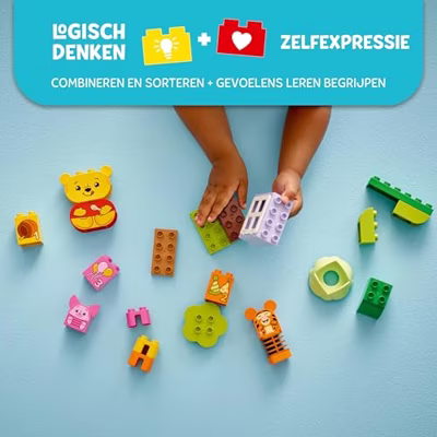 Ouders en peuters beleven samen leerzame speelmomenten met deze LEGO® DUPLO® ǀ Disney Het verjaardagsfeest van Winnie de Poeh (10457) bouwset. Met dit kleurrijke educatieve bouwspeelgoed kunnen peuters vanaf 18 maanden hun vaardigheden ontwikkelen terwijl ze genieten van fantasierijk spel. Peuters stellen zich voor dat ze een feestje vieren met de 3 LEGO DUPLO figuren: Winnie de Poeh, Teigetje en Knorretje. Elk personage heeft een dubbelzijdig gezicht met verschillende uitdrukkingen voor creatief spel en het bedenken van verhalen. Deze leuke functie biedt ook sociaal-emotionele leeractiviteiten voor peuters waarbij ze de verschillende emoties verkennen die iemand op een feestje kan voelen: van vreugde van het openen van cadeaus tot ongemak na het eten van te veel snoep! Met dit bouwspeelgoed kunnen peuters oefenen met het sorteren van kleuren terwijl ze de verjaardagscadeaus combineren met de dierenfiguren. Doordat elk cadeau genummerd is, kunnen peuters ook alvast oefenen met tellen. Leuk educatief bouwspeelgoed – peuters genieten van feestelijk speelplezier en oefenen belangrijke vaardigheden met de LEGO® DUPLO® ǀ Disney Het verjaardagsfeest van Winnie de Poeh bouwset 3 LEGO® DUPLO® bouwbare dieren – inclusief bekende LEGO DUPLO Disney figuren van Winnie de Poeh, Teigetje en Knorretje, plus cadeaus en een bouwbare boomhut voor fantasierijke verhalen Sociaal-emotioneel bouwspeelgoed – elk personage heeft een leuk dubbelzijdig gezicht, waardoor het voor kinderen die nog niet goed kunnen praten mogelijk is om de verschillende emoties te verkennen die mensen op feestjes voelen Spelenderwijs leren – peuters leren combineren door de bouwbare verjaardagscadeaus en stoelen te koppelen aan de kleuren van de personages Cadeautip voor kleine Disney fans – een geweldig cadeau voor peuters die graag met bouwbaar speelgoed over emoties spelen Digitale bouwinstructies – de LEGO® Builder app bevat een digitale versie van de bouwinstructies die bij dit bouwbare peuterspeelgoed horen, dat is getest om een veilige speelervaring te garanderen Leerzaam speelgoed voor peuters – LEGO® DUPLO® avontuurlijk speelgoed ondersteunt de sociale en emotionele ontwikkeling door middel van creatief speelplezier Afmetingen – deze 22-delige set bevat een boomhut van ca. 15 cm hoog, 7 cm breed en 11 cm diep Ouders en peuters beleven samen leerzame speelmomenten met deze LEGO® DUPLO® | Disney Het verjaardagsfeest van Winnie de Poeh (10457) bouwset. Met dit kleurrijke educatieve bouwspeelgoed kunnen peuters vanaf 18 maanden hun vaardigheden ontwikkelen terwijl ze genieten van fantasierijk spel. Peuters stellen zich voor dat ze een feestje vieren met de 3 LEGO DUPLO figuren: Winnie de Poeh, Teigetje en Knorretje. Elk personage heeft een dubbelzijdig gezicht met verschillende uitdrukkingen voor creatief spel en het bedenken van verhalen. Deze leuke functie biedt ook sociaal-emotionele leeractiviteiten voor peuters waarbij ze de verschillende emoties verkennen die iemand op een feestje kan voelen: van vreugde van het openen van cadeaus tot ongemak na het eten van te veel snoep! Met dit bouwspeelgoed kunnen peuters oefenen met het sorteren van kleuren terwijl ze de verjaardagscadeaus combineren met de dierenfiguren. Doordat elk cadeau genummerd is, kunnen peuters ook alvast oefenen met tellen.