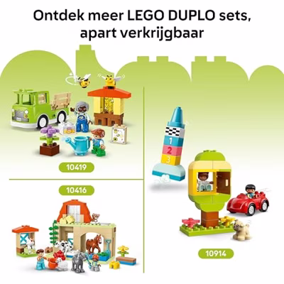 Laat de creativiteit en fijne motoriek van je peuter tot bloei komen met het LEGO® DUPLO® Stad Creatieve bloementuin (10444) stapelspeelgoed. Deze bouwset met 45 stenen, waaronder kleurrijke bloemen en schattige LEGO DUPLO dieren, inspireert kinderen om een mooie tuin te bouwen die ze keer op keer kunnen veranderen.Dit leerzame speelgoed stimuleert de fantasie van peuters door ze te helpen de wereld die ze elke dag zien na te maken. Terwijl ze de 45 stenen gebruiken om hun speelgoedtuin te bouwen, oefenen peuters met getallen, kleuren en taal. Ze ontwikkelen ook hun doorzettingsvermogen wanneer ze de verschillende stenen stapelen om wezens en bloemen te creëren.Ben je op zoek naar een leuk cadeau voor een peuter? Dit creatieve speelgoed bevat veel stenen, zodat peuters de creatieve vrijheid hebben om de tuin op hun manier te maken. Ze kunnen de speelgoedfiguren van een vlinder, een bij en een kikker plaatsen waar ze maar willen en versterken ondertussen belangrijke vaardigheden!
