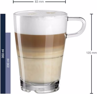 Over dit latte macchiatoglas uit de Leonardo Senso koffielijn is nagedacht. De glazen zijn zo ontworpen dat ze makkelijk stapelbaar zijn en er ook nog leuk uitzien. De bodem van het glas is gemaakt van getemperd glas waardoor er rechtstreeks vanuit de waterkoker of Quooker geschonken kan worden, zonder dat er kans is op breuk of scheuren in het glas. De glazen zijn magnetron- en vaatwasserbestendig, in de bodem zijn zelfs 3 gleufjes aangebracht zodat er geen water in blijft staan als je de vaatwasser uitruimt.