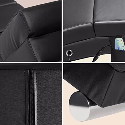 Voel je goed en ontspan met de relax ligbank met massage- en verwarmingsfunctie - wellness voor thuis! Met 8 massagepunten en 5 verschillende massagestanden, elk uit te voeren in 2 intensiteitsniveaus, en de verwarmingsfunctie staat niets een weldadige massage van het hele lichaam meer in de weg. Productvoordelen: Afstandbediening inbegrepen voor eenvoudige bediening Ergonomisch gevormd ligvlak Extra hoge rugleuning Dikke, zachte bekleding Stevige verchroomde, metalen voeten Slijtvaste en onderhoudsvriendelijke hoes Zijvak voor he topbergen van de afstandsbediening Hoge belastbaarheid 180 kg Hoge kwaliteit afwerking Moderne, tijdloze look Eenvoudige en snelle montage Massage- en verwarmingsfuncties: Verwarmingsfunctie voor het koude jaargetijde 8 massagepunkten: 2 elk bij schouder, heup; dij, kuit individueel selecteerbaar 5 massagestanden: pulserend, drukkend, golfbeweging, automatisch en normaal 2 intensiteitsniveaus: hoog & laag Timerfunctie: 15, 30 of 60 min Technische gegevens: Afmetingen (lxbxh): 186 x 55 x 89 cm Belastbaarheid: max. 180 kg Materiaal vulling: schuimstof Materiaal hoes: 60% polyurethaan, 20% polychloride, 20% polyester Materiaal framen: staal, pootjes verchroomd Vermogen: 14,4 Watt Kleur: Zwart Leveringsomvang: 1x gestoffeerde ligstoel London met massage- en verwarmingsfunctie 1x afstandsbediening en gebruiksaanwijzing