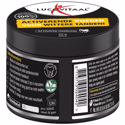 Activated Charcoal, ofwel geactiveerde houtskool zorgt voor wittere tanden en een schoon gebit, zonder toevoegingen van chemicaliën of additieven. Geactiveerde houtskool is een 100% natuurlijk poeder, gemaakt van kokosnoot. Het versterkt en polijst de tanden zonder dat deze gevoelig worden of dat er bijwerkingen optreden. Activated Charcoal is geschikt voor dagelijks gebruik!