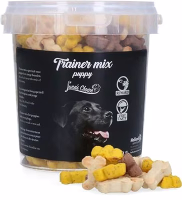 Deze koekjes zijn simpelweg de onweerstaanbare snack voor iedere hond. De koekjes worden met zorg gebakken in een oven en na het afkoelen en uitharden snel verpakt waardoor ze heerlijk vers en krokant zijn. Puppy mix staat voor het formaat, deze koekjes zijn namelijk maar 2 cm groot, waardoor ze perfect voor trainingen en cursussen gebruikt kunnen worden. Het mooiste van alles is dat deze snoepjes gemaakt zijn in Nederland!