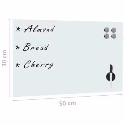Het droog uitwisbare, magnetische glasbord biedt alle voordelen van een traditioneel schrijfbord op een modernere manier. Het glassboard is gemaakt van veiligheidsglas, dat moeilijk bevlekt, bekrast of indeukt. Met de bijgeleverde magneet kan je notities of aantekeningen op het bord bevestigen. Daarnaast kun je op het magneetbord schrijven met een droog uitwisbare, witte stift en is het gemakkelijk schoon te maken met de meegeleverde bordwisser. De benodigde materialen voor wandmontage worden meegeleverd, waardoor het bord eenvoudig op elke muur in huis, kantoor of school kan worden bevestigd. Het schrijfbord is eenvoudig te monteren.