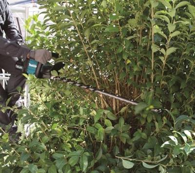 De Makita UH006GM201 is een krachtige accu heggenschaar die ideaal is voor het terugsnoeien van hagen en struiken. Met een indrukwekkende meslengte van 600 mm en een variabele snelheid tot 4000 snijbewegingen per minuut, biedt deze heggenschaar de kracht en precisie die je nodig hebt voor professioneel snoeiwerk. Belangrijkste kenmerken van de Makita UH006GM201 * Terugsnoeiuitvoering: Perfect voor het snoeien van hagen en struiken. * Draaibare achterhandgreep: Zorgt voor optimale controle en een ontspannen houding in elke positie. * Dubbelzijdige messen: Dubbelsnijdend voor efficiënt snoeien. * Geschikt voor dikke takken: Kan takken tot 25 mm dikte knippen. * Elektrische veiligheidsrem: Stopt de messen direct voor extra veiligheid. * Lage trillingen en geluidsproductie: Voor comfortabel en
