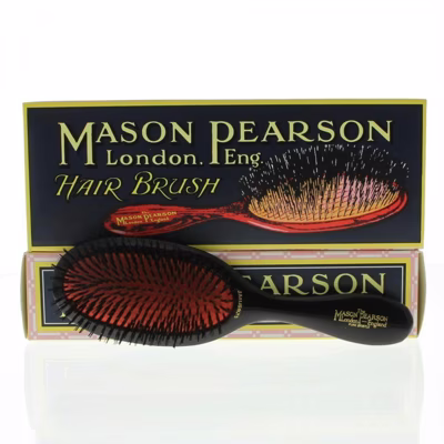 Mason Pearson haarborstel is de Rolls Royce onder de haar borstels. Het stimuleert de bloedsomloop van de hoofdhuid, ontdoet het haar beter van stof en vuildeeltjes en zorgt voor een natuurlijke glans van het haar. Een Mason Pearson borstel is zodanig ontworpen dat elke haar vanaf de hoofdhuid de behandeling ondergaat. Mason Pearson maakt de unieke rubberen kussen met de hand, met gebruik van originele technieken en zorgt voor een effectief en efficiënt borstelen. Het is vriendelijk in gebruik en masseert de hoofdhuid. Het cellulose handvat is met de hand gepolijst. Mason Pearson heeft een eigen speciale nylon ontwikkeld en is er met zorg een selectie van natuurlijke haren om de beste combinatie te gebruiken voor elke borstel. De pad en de haren moeten regelmatig worden schoongemaakt. Voor het beste resultaat, gebruik dan een borstel, die wordt geleverd met alle grotere modellen. Maak een schuim van lauw (niet heet) water en zeep. Gebruik geen schoonmaakmiddelen, ammoniak, op petroleum gebaseerde producten of shampoo om de haarborstel schoon te maken. Laat de borstel op natuurlijke wijze drogen met het pad naar beneden.