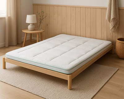 Natuurlijke verkoeling en comfort met de Bamboo Topper uit de 3D Air Collectie Ervaar ultiem slaapcomfort met de Bamboo Mattress Topper uit de 3D Air Collectie. Deze topper is ontworpen op basis van dezelfde technologie als het bekroonde Matt matras, maar met een innovatieve toevoeging: de AIR©-technologie. Dankzij een 12x meer opencellige structuur biedt de topper uitzonderlijke ventilatie en vochtregulatie voor een fris slaapklimaat. Materialen & Opbouw * Hoes: Natuurlijk en duurzaam Tencel - zacht voor de huid en milieuvriendelijk. * Kern: * Bovenlaag van ademende Hypersupport firm voor optimale ondersteuning * Onderlaag van opencellige Hypersupport soft voor extra comfort Eigenschappen * Dikte: 5 cm * Hardheid: Medium-Firm * Maximale belasting: 200 kg * Uitgerust met elastische banden voor stevige bevestiging en eenvoudig opbergen OnderhoudDe hoes is afneembaar en wasbaar op 60 °C. Het deel met het blauwe inzetstuk kan gewassen worden op 30 °C, wat zorgt voor eenvoudig onderhoud en hygiëne.