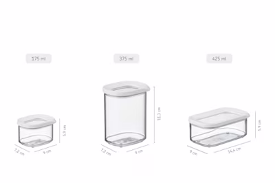 Mepal bewaardoos Modula mini 375 ml - witBewaardoos Modula 375 ml, voorzien van een doorzichtige deksel met witte ring. Dit kleine doosje met afgeronde hoeken heeft een inhoud van 375 ml en geeft direct zicht op inhoud, ook in de keukenla! De witte afdichtring zorgt voor een luchtdichte afsluiting, waardoor deze kleine voorraaddoos geschikt is voor het bewaren van kruiden en kleine specerijen. De Modula bewaar- en opbergdozen van Mepal zijn verkrijgbaar in verschillende maten en uitvoeringen, liggen goed in de hand en zijn makkelijk te openen. Bovendien zijn ze stapelbaar en vaatwasmachinebestendig. Hoe veeleisend u ook bent: Modula bewaardozen zijn erop berekend!Artikelnummer 106921030600Kleur WitSerie ModulaInhoud 375 mlMateriaal Styreen Acrylonitril (SAN), Polyethyleen (PE)Lengte 90 mmBreedte 72 mmHoogte 113 mmGewicht 99 grMag in de vaatwasserMag niet in de diepvriesMag niet in de magnetronGeschikt voor contact met levensmiddelen0% BPA