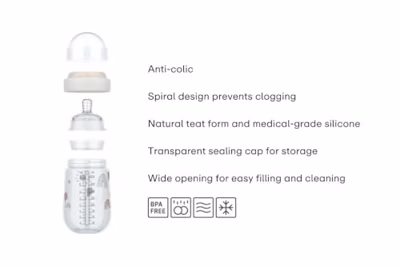 De Mepal Little Dutch Forest Friends Babyflesmet ergonomisch design is ideaal voor je kleintje. Hij is lekdicht en BPA-vrij en wordt inclusief zachte speen geleverd. De fles is eenvoudig schoon te maken in de vaatwasser. Inhoud: 165 ml.