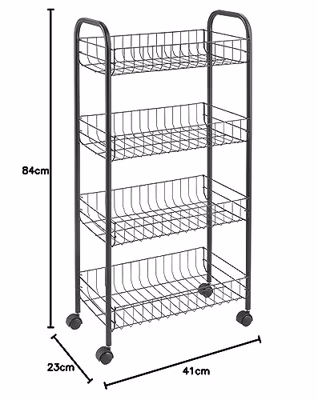 Metaltex ascona trolly met wielen + 4 manden 41x23x84 cm mat zwart/metaal