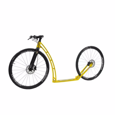 *designed by former world champion Michal Kulka*Racing Revoo van MIBO uit de EU. Dit is dé race en tour step voor wie van snelheid maken houdt terwijl je buiten sport. Profs kopen deze stepColour: Zinc yellow - RAL 1018De MIBO Revoo is een racestep uitgerust met hoogwaardige componenten die je ook in de wielersport vindt. Lichtgewicht racestep voor toersteppers én wedstrijdrijders met een hoogwaardig stalen frame en hoogwaardige aluminium KASTAR gravelwielen met steekassen, voorzien van Continental GP 5000 banden met een breedte van 32 mm. De step heeft een standaard vorkbreedte (100 mm). Stalen frame met steekassen, asymmetrische balhoofdbuis (tapered), framegewicht: 3,8 kg.A-head semi-geïntegreerd.Shimano MT410 remmen: hydraulisch.Voorvork TRIGON RC142FE disc - carbon, zwart glanzend, gewicht: 370 g. 700 x 32C carbon hals 1 1/8" - 1,5", binnenbreedte 44 mm, vorkuitsparingen voor steekas 12 x 100 mm.Achtervork: stalen MIBO, achterpatten voor steekas 12 x 100 mm, 700 x 32C speling, SRAM steekas.Banden: Continental GP 5000, breedte 32 mm.Binnenband: 28"Wielen: aluminium KASTAR G19, centerlock schijfremnaven - geschikt voor tubeless en tubeless systemen, gewicht 2 wielen zonder banden: 1350 g ZONDER STANDAARD, zonder voorbereiding voor een standaard, zonder spatborden. De voormalig wereldkampioen Michal Kulka heeft met zijn feeling en passie voor kwaliteit deze step samengesteld uit de beste onderdelen.De step staat garant voor extreem lichte rij eigenschappen.Deze step is uitermate geschikt voor het rijden van tourritten en wedstrijden