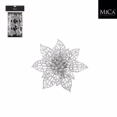 Mica Decorations Clip Poinsettia 1x8 cm 6 Stuks Zilver