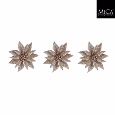 Mica Decorations clip Poinsettia Afmeting: 3 x 10 cmAantal: 3 stuksKleur: champagne