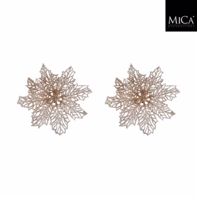 Mica Decorations clip Poinsettia Afmeting: 3 x 13,5 cmAantal: 2 stuksKleur: champagne