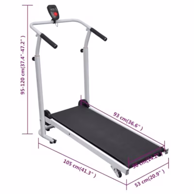 Deze handmatige loopband maakt het mogelijk om thuis te sporten op een moment dat jou uitkomt. De loopband heeft een loopvlak van 93 x 36 cm. Door vooruit te lopen, laat je de band bewegen. Hoe sneller je loopt, hoe sneller de band beweegt. Het anti-slip loopoppervlak is comfortabel en veilig om op te lopen. De meegeleverde monitor houdt de snelheid, trainingstijd, afgelegde afstand en verbrande calorieën bij. Dankzij het inklapbare ontwerp neemt de loopband niet te veel ruimte in wanneer deze wordt opgeborgen. De 2 vliegwielen geven de gebruiker een soepele loopervaring. Daarnaast kunnen de voetjes in de hoogte worden aangepast om de hoek van de loopband te verstellen. Met deze compacte en flexibele, inklapbare loopband kan je comfortabel thuis trainen!