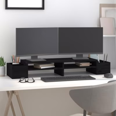 Monitorstandaard 100x27,5x15 cm massief grenenhout zwart