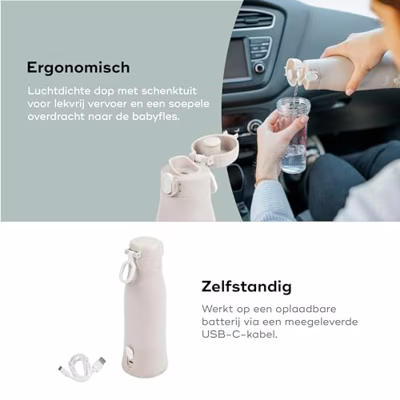 Moov & Feed draagbare flessenwarmer - BABYMOOV - 340ml - mineraalbeige - Temperatuurinstelling - Houdt warm