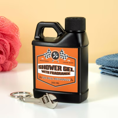 Start je dag met de Motorolie douchegel. Grappig verpakt in een jerrycan, met een originele sleutelhanger met miniatuur-gereedschap. Leuk als cadeau!
