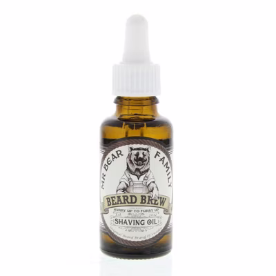 Mr Bear Family Shaving Oil, deze baardolie maakt de baard zacht voor het scheren en functioneert tevens als een schild voor de huid zowel gedurende als na het scheren. Daarnaast gaat de olie roodheid, irritatie en een droge huid na het scheren tegen. Bevat uitsluitend natuurlijke ingrediënten. Gebruiksaanwijzing: Enkele druppels scheerolie door de handen verdelen, vervolgens aanbrengen op een vochtige baard. Gevoelige plekken, zoals net boven de lippen als laatste scheren, zodat de olie langere tijd kan intrekken. Na het scheren het gezicht wassen en een extra drubbel scheerolie aanbrengen ter hydratatie van de huid.