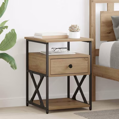 Deze moderne nachtkast biedt een mooie mix van stijl en functie. Het strakke ontwerp en de zwarte afwerking maken het een aantrekkelijke toevoeging aan elke slaapkamer, en het is ideaal voor al je bijzetopslag. Materialen: Gemaakt van hoogwaardig gefabriceerd hout, wat zorgt voor een stevig en licht meubelstuk. Het gestructureerde oppervlak geeft het karakter en maakt het duurzaam, wat je slaapkamer nog mooier maakt. Inclusief componenten: De kast heeft praktische lades en plankjes voor al je persoonlijke spullen. Het stevige staal en het poedergecoate metalen frame zorgen voor extra stabiliteit. Kenmerken / Functie / Ontwerp: Het moderne design heeft eenvoudige lijnen die bijdragen aan de functionaliteit. Met een duurzame opbouw en een matte afwerking krijgt je slaapkamer een chique uitstraling. Aangeraden gebruik: Perfect voor in de slaapkamer, deze nachtkast helpt je om alles netjes op te bergen, en kan ook gebruikt worden voor lampen, klokken en andere persoonlijke spullen. Onderhoud & Zorg: Veeg de kast af met een vochtige doek om hem mooi te houden. Vermijd schurende schoonmaakmiddelen. Met regelmatig onderhoud blijft de kast er goed uitzien, ook na verloop van tijd.