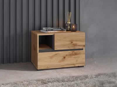 Nachtkastje CROSSAIR met 2 lades in wotan eik combineert natuurlijke charme met hedendaags design. De warme houttint en zichtbare houtnerf zorgen voor een gezellige uitstraling die moeiteloos past in elke slaapkamerstijl.Dankzij de twee lades en het open vak heb je al je spullen overzichtelijk bij de hand. Het open vak kun je tijdens de montage aan de linker- of rechterkant plaatsen, zodat het perfect aansluit op jouw slaapkamerindeling. Maak het geheel compleet met andere meubels uit de CROSSAIR-collectie voor een stijlvolle en rustgevende look.