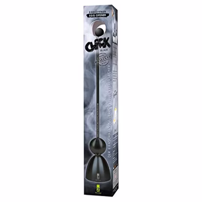 De zwarte Clack ei onttopper wordt gebruikt voor het kaarsrecht onttoppen van een rauw of gekookt ei. Het is een dopje met scherpe rand en een lange pen met een rond balletje eromheen. De Clack is 24 cm lang en gemaakt van roestvrijstaal. Om een ei te onttoppen, houd je het in je handpalm, plaats je het hoedje recht op het ei en laat je het balletje in één keer vallen. Het gewicht van het balletje zorgt ervoor dat het ei strak wordt onttopt. Gebruik een dun mes om voorzichtig het topje van het ei te snijden, zodat er een mooie scherpe rand ontstaat.