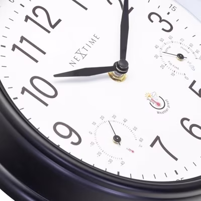DeNeXtime NE-4318WI buitenklok Jasmine verteld meer dan alleen de tijd. Deze wandklok heeft namelijk ook een thermometer op de index welke de temperatuur in Celsius weergeeft en geeft de luchtvochtigheid aan. Deze klok heeft subtiele zwarte rand met een witte wijzerplaat met een duidelijke cijfer en streep index. Het gebruik van extra rubberen ringen om te voorkomen dat het water de kwetsbare delen van de klok bereikt, maakt deze klok bijzonder en weerbestendig. De klok is geschikt voor zowel binnen als buiten en werkt op 1x AA-batterij (niet inbegrepen). Diameter: 23,5 cm.