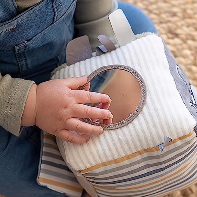 Nijntje Fluffy activiteitenkubusJe kindje zal zich niet snel vervelen met deze leuke activiteitenkubus in blauw tinten. Op elke zijde van de kubus is iets anders te ontdekken zoals leuke afbeeldingen, verschillende stoffen, labeltjes om aan te voelen, een spiegeltje en een siliconen Nijntje ring. Ook zit er binnenin de kubus een belletje voor een leuk rammeleffect.